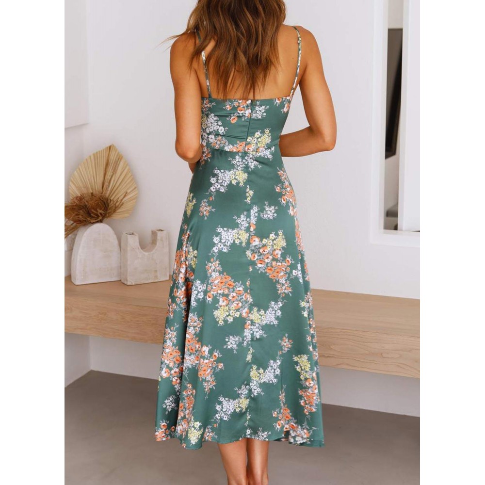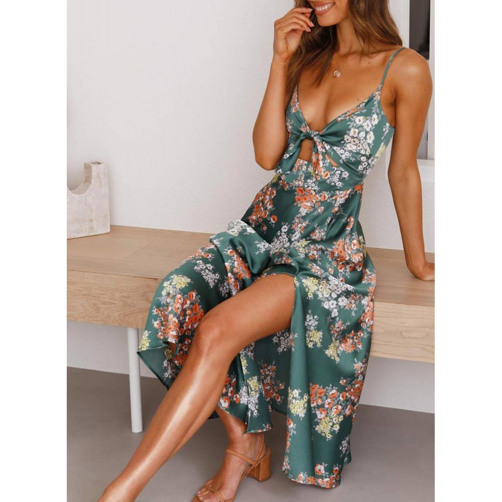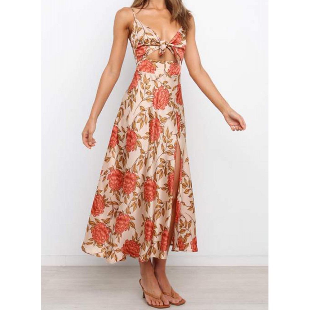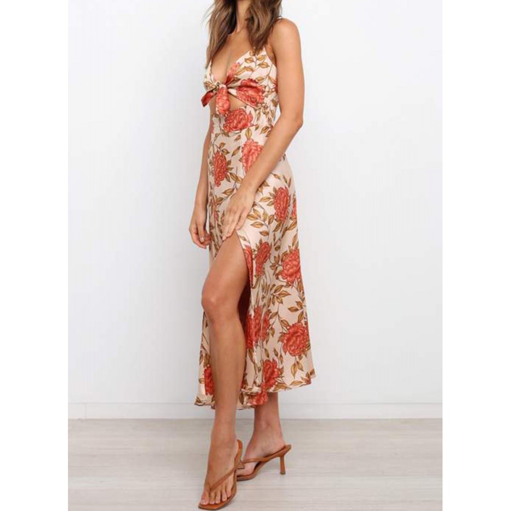 Women's Dresses Satin Floral Split Chest Knot Cutout Midi Dress