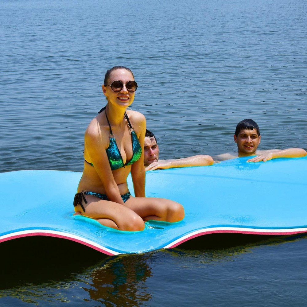 - Three-layer Composite XPE Foam -- Our floating water pad is made up of three layers of eco-friendly XPE foam, which is of good quality, does not absorb water and is not easily deformed. The XPE foam is odorless, bouncy, safer, and effective to prevent bacterial growth, and smooth surface can make you more comfortable.
